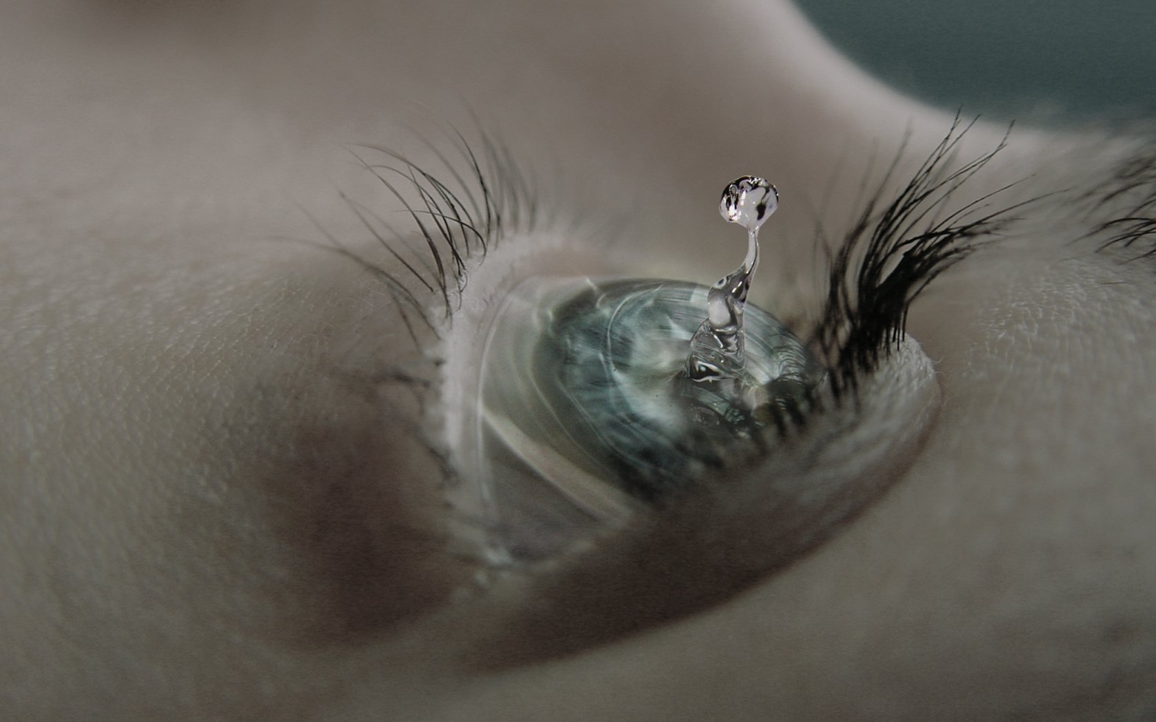 Makrofoto des blauen auges eines gefleckten leopardenMakrofoto des blauen Auges eines gefleckten Leoparden