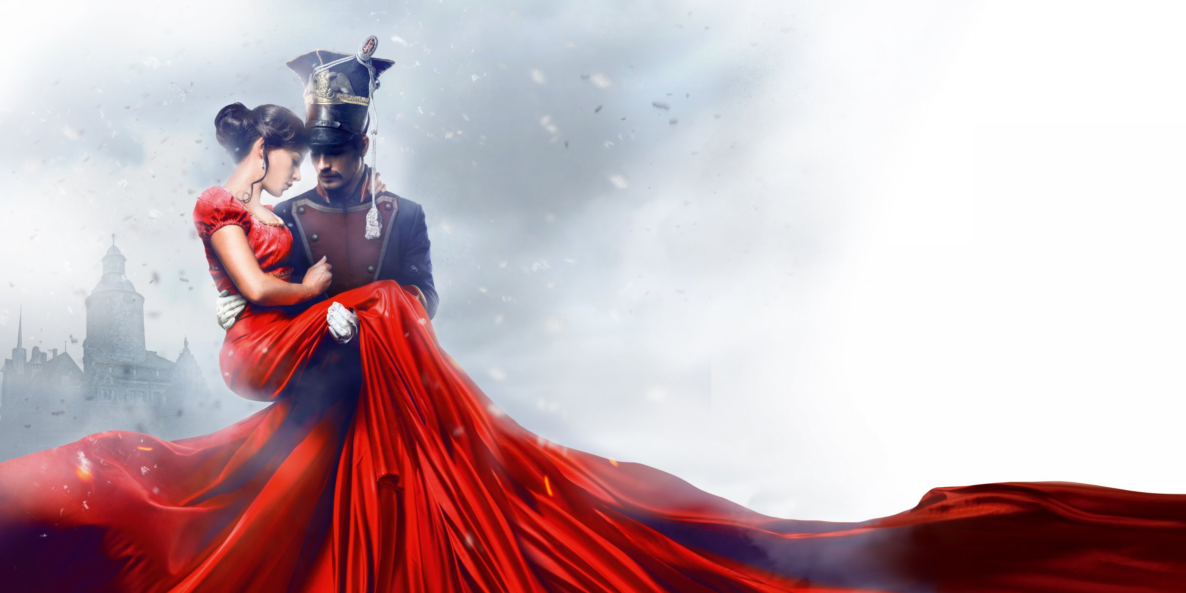 1812, Ulan-Ballade Mädchen in einem roten Kleid auf den Armen eines Soldaten