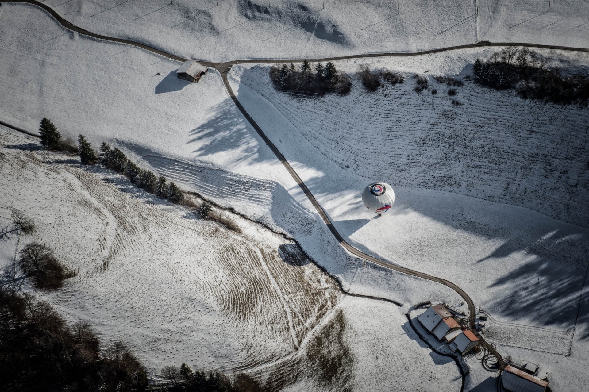 Foto von einem heißluftballonbrenner. flug in einem heißluftballon. professionelles foto des fotografen und des ballons. grüne kugel in der luftFoto von einem Heißluftballonbrenner. Flug in einem Heißluftballon. Professionelles Foto des Fotografen und des Ballons. Grüne Kugel in der Luft