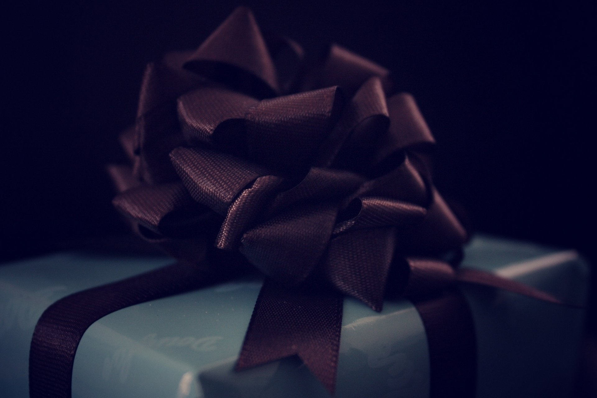 Geschenk mit schleife im dunkeln - überraschung für einen geliebten menschenGeschenk mit Schleife im Dunkeln - Überraschung für einen geliebten Menschen