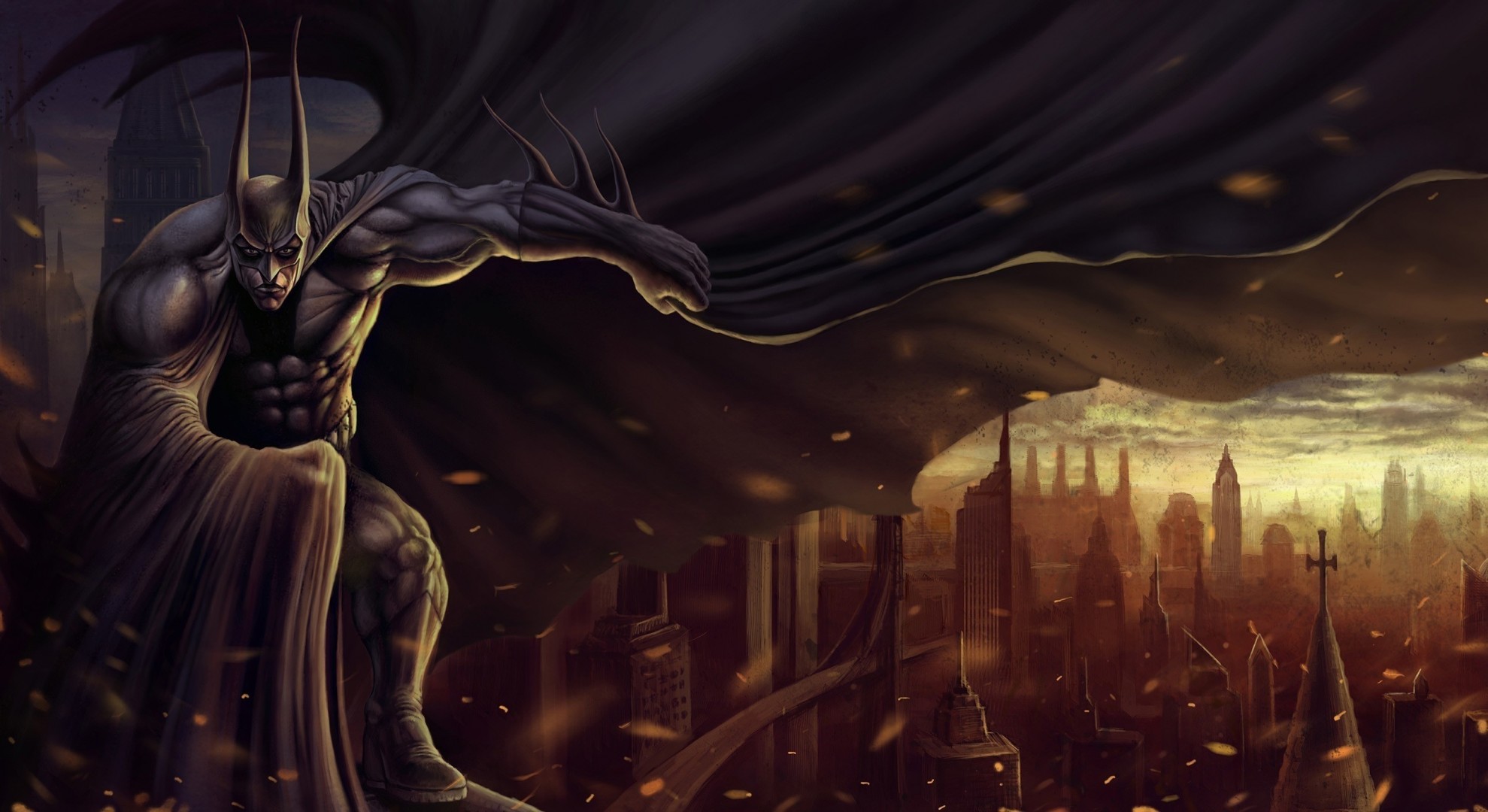 Ein kleines mädchen fliegt in einer maske und einem batman-kostümEin kleines Mädchen fliegt in einer Maske und einem Batman-Kostüm