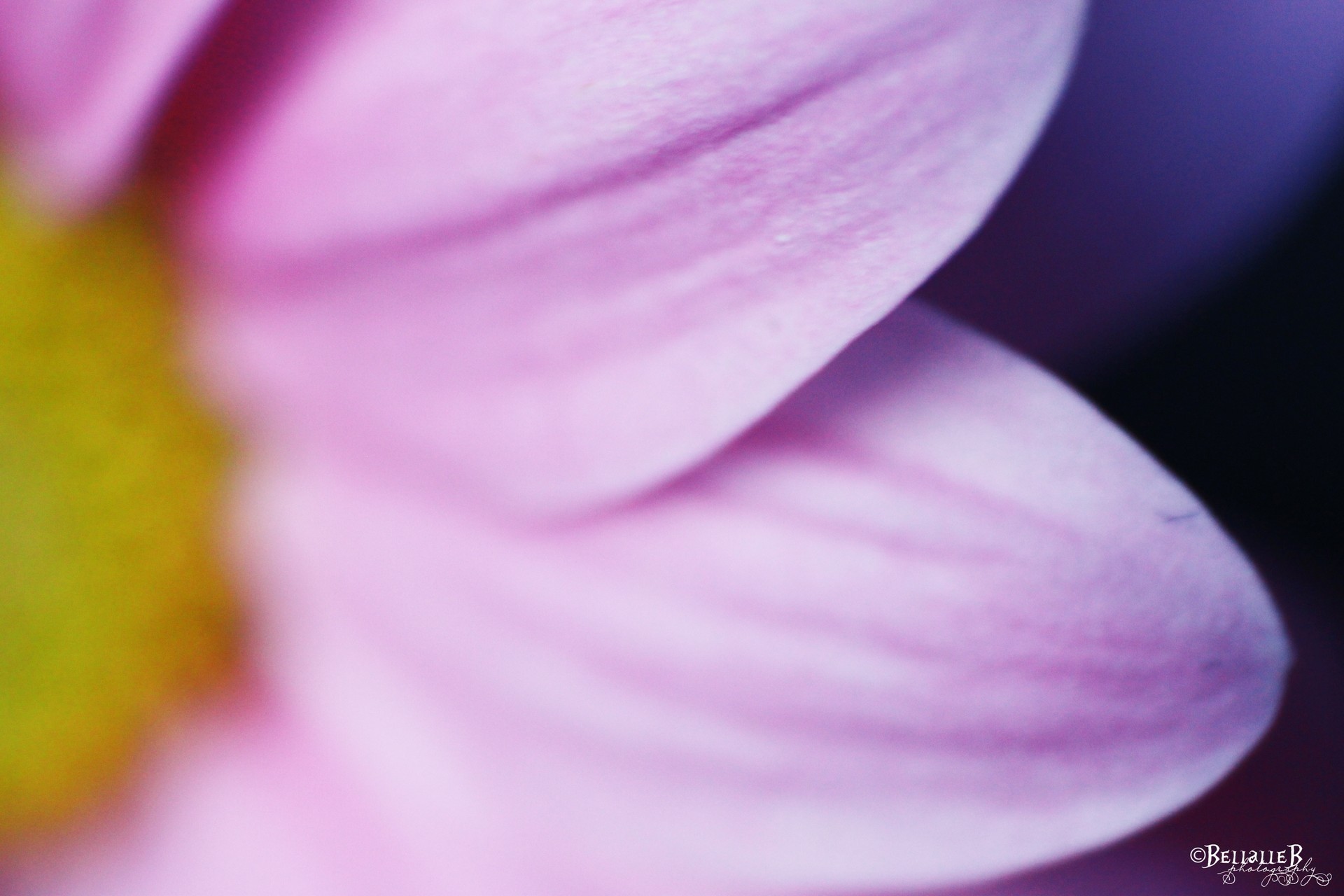Nahaufnahme einer Blume mit lila Blütenblättern und einem gelben Kern