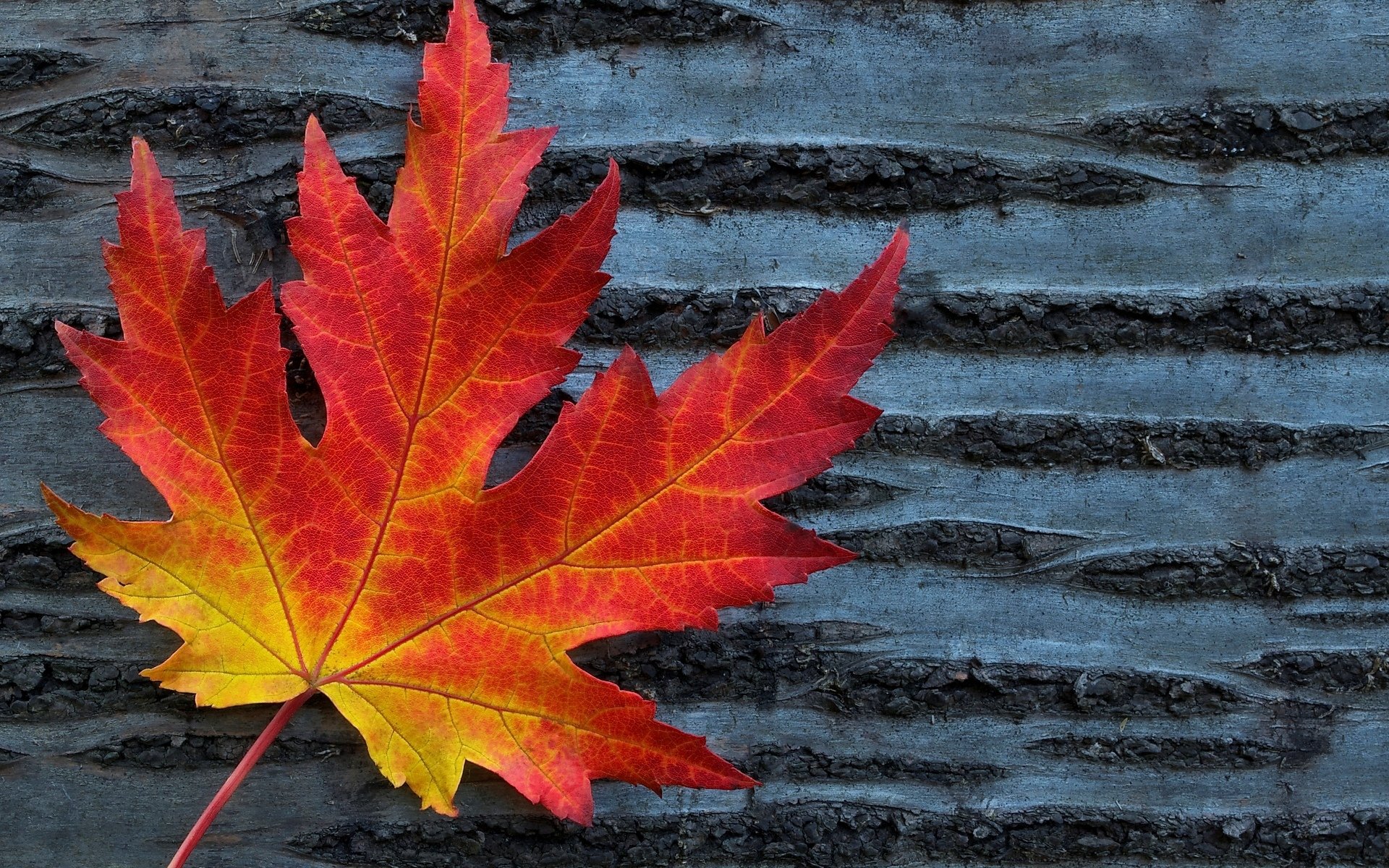 Gelbes Herbstblatt auf einem Ast mit einem unscharfen Hintergrund