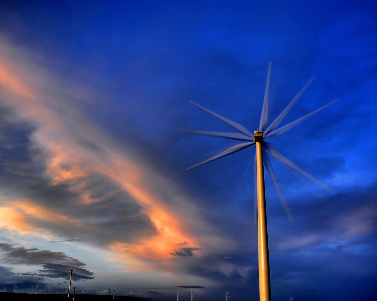Der faszinierende blaue Himmel lenkt von Windrädern ab