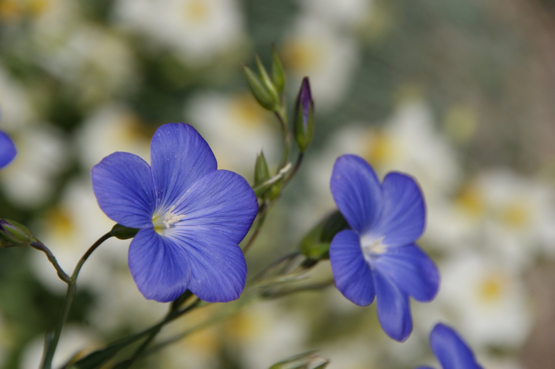 Blaue Blüten auf einem verschwommenen weißen Hintergrund