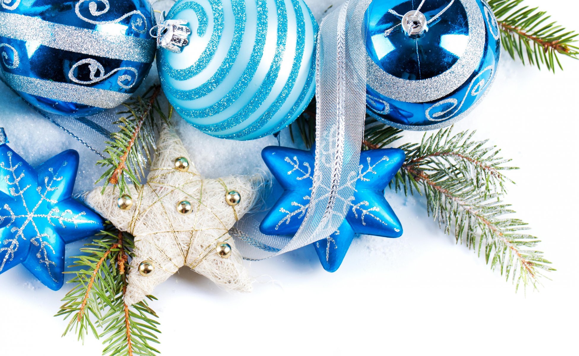 Bögen, blaue kugeln schmückten den weihnachtsbaum für das neue jahrBögen, blaue Kugeln schmückten den Weihnachtsbaum für das neue Jahr