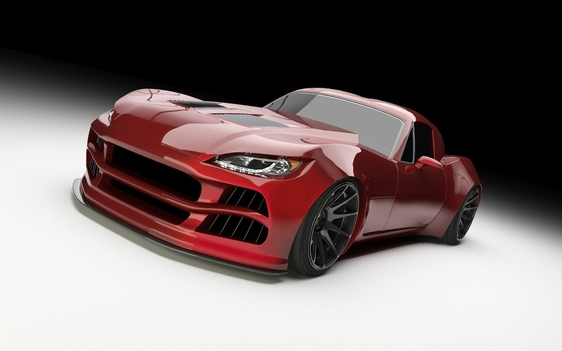 Luxuriöses rotes auto auf schwarzem und weißem hintergrundLuxuriöses rotes Auto auf schwarzem und weißem Hintergrund