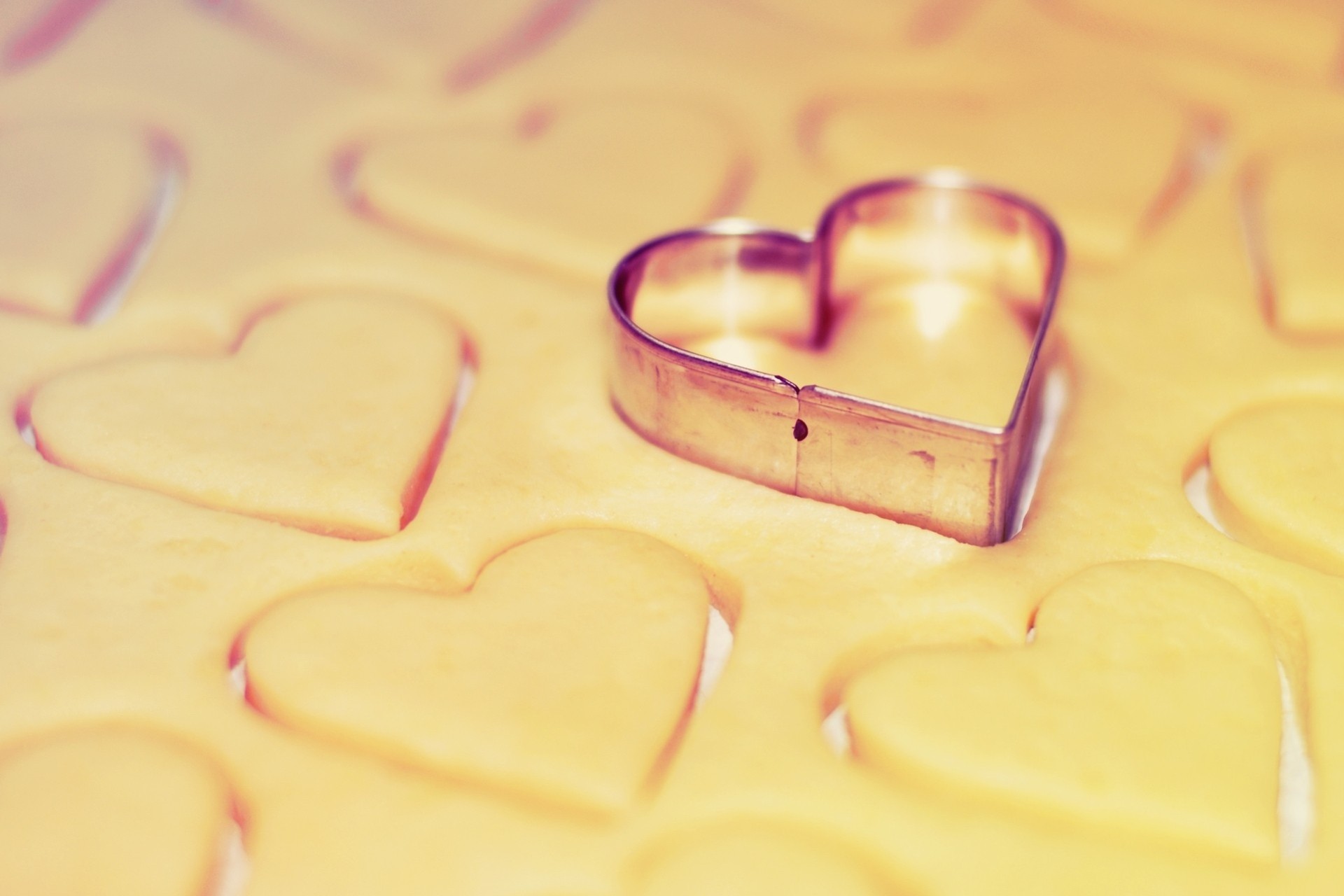Bereiten sie leckere kekse in form eines herzens zuBereiten Sie leckere Kekse in Form eines Herzens zu