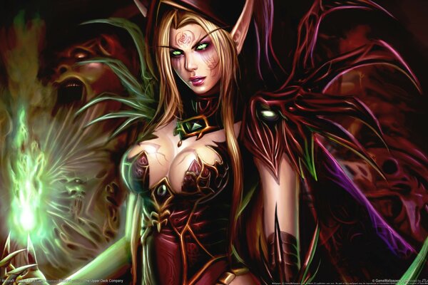 Eine kriegerische Elf mit einem Stab in der Hand