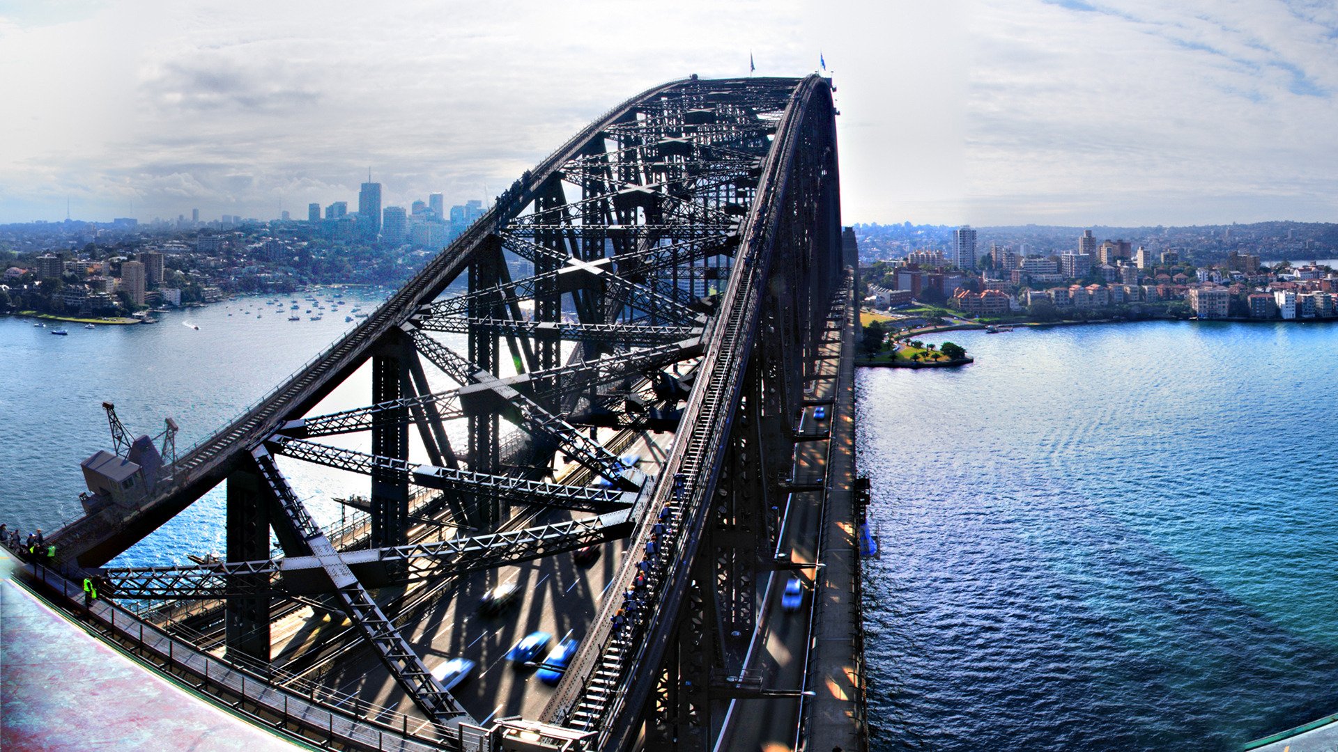 Schwarz-Weiß-Bogen-Brücke mit Netz