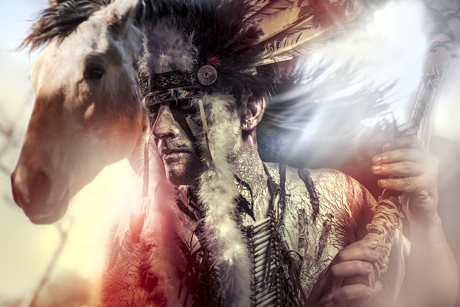 Ein eisernes pferd mit einem mächtigen mädchen, das einen schädel-helm mit hörnern trägtEin eisernes Pferd mit einem mächtigen Mädchen, das einen Schädel-Helm mit Hörnern trägt