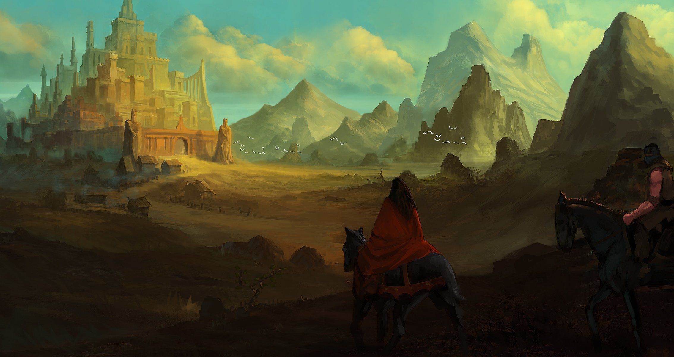 Bunte illustration einer reisenden auf einem pferdBunte Illustration einer Reisenden auf einem Pferd