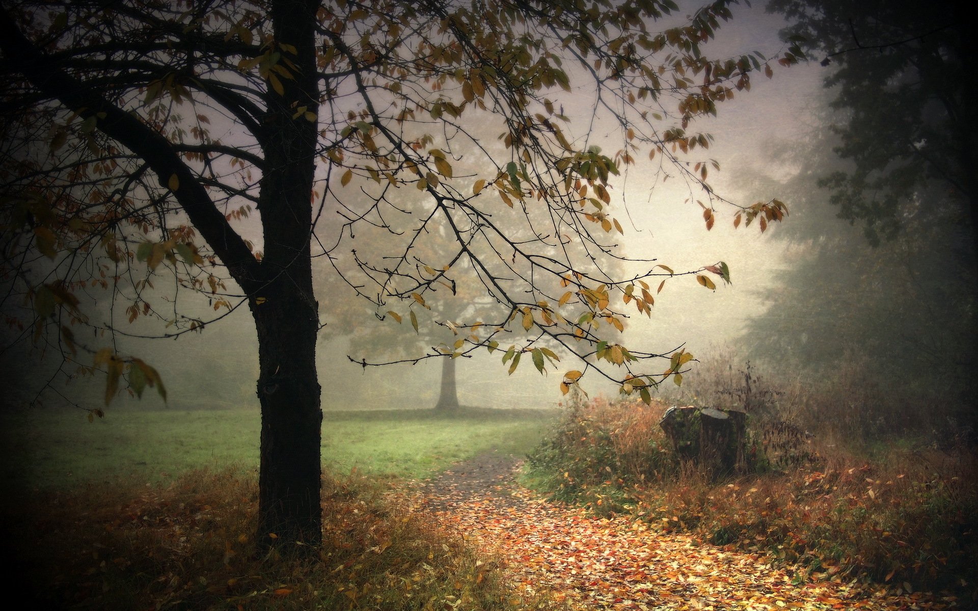 Fluss im Wald, Natur im Park, bunter Wald im Herbst
