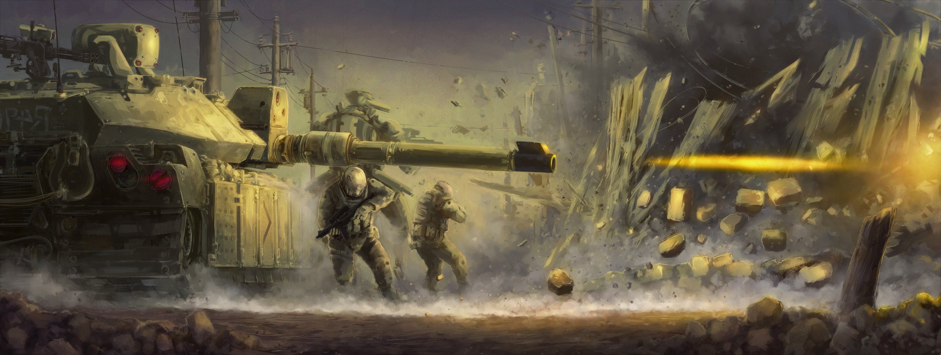 Flucht eines Soldaten aus Battlefield 4 in Ausrüstung vor Feuer und Panzer
