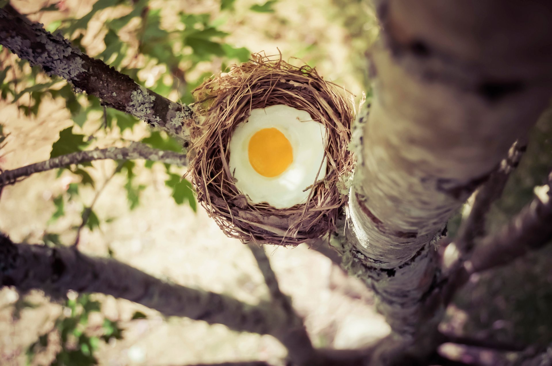 Ein Nest mit Eiern auf einem Baum