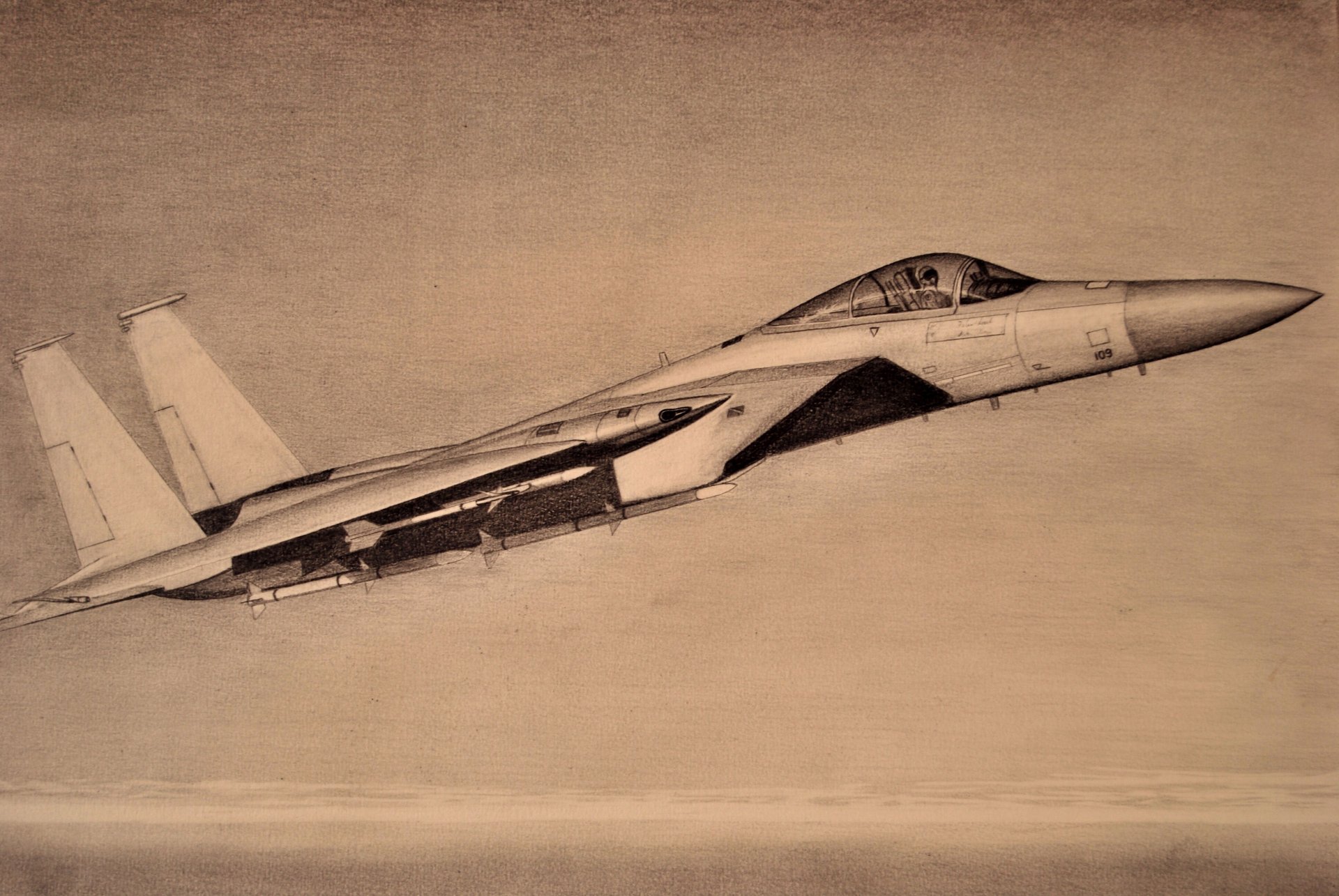 Bleistiftzeichnung eines taktischen f-15-Kampfflugzeugs