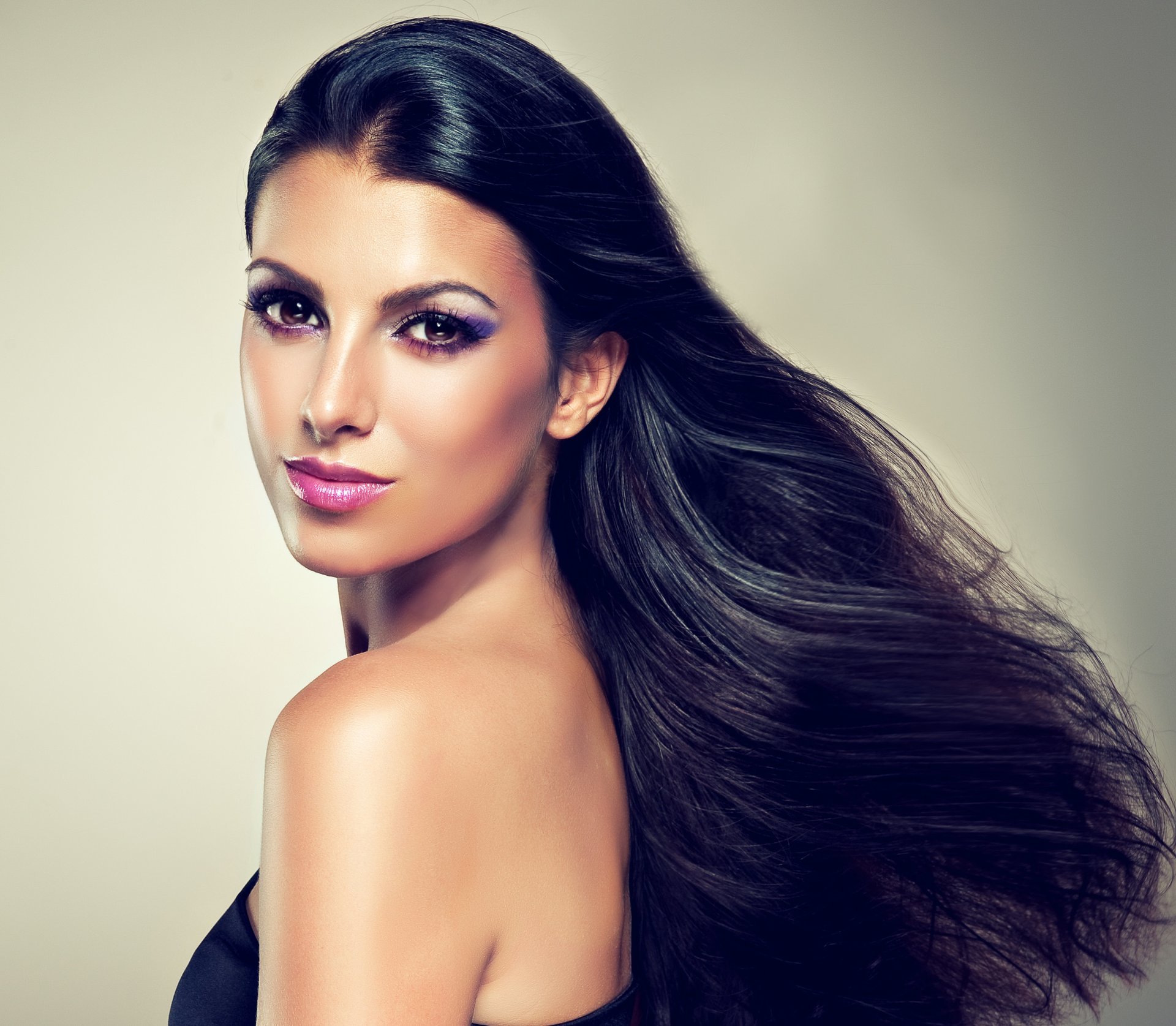 Mädchen mit Haarschnitt und Make-up auf neutralem Hintergrund