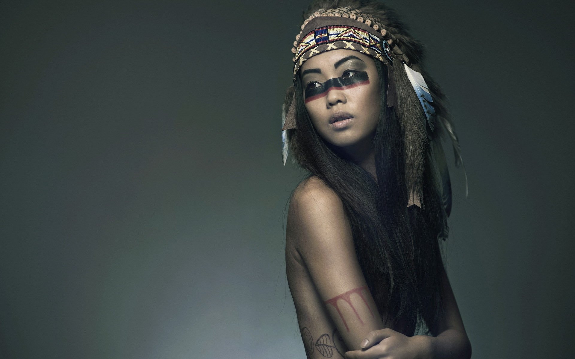 Mädchen mit nackter Schulter auf einem einfarbigen Hintergrund