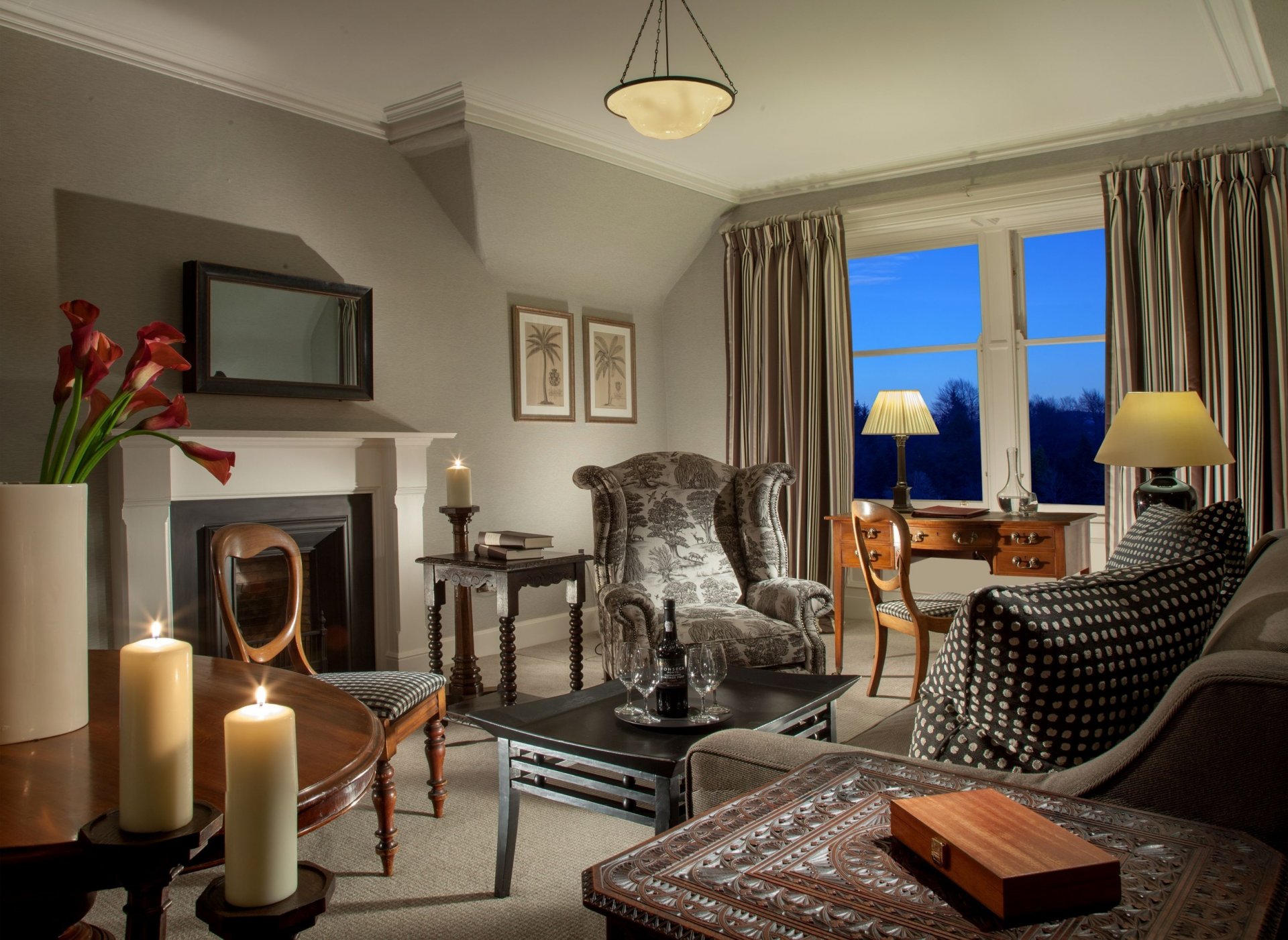 Das Innere eines verlassenen Zimmers mit einem Kamininternier