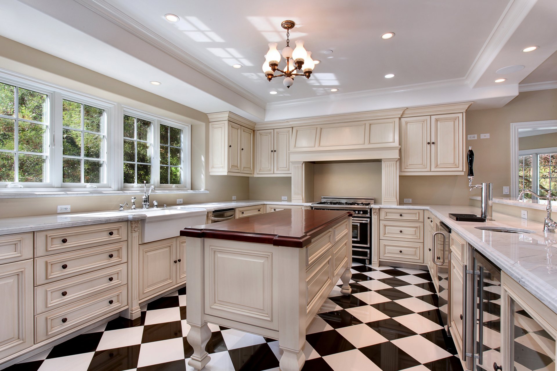 Das Innere der kombinierten Küche und des Wohnzimmers