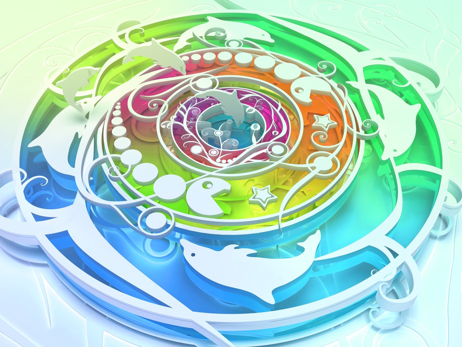 Schiff mit weißen segeln im offenen ozean mit delfinenSchiff mit weißen Segeln im offenen Ozean mit Delfinen
