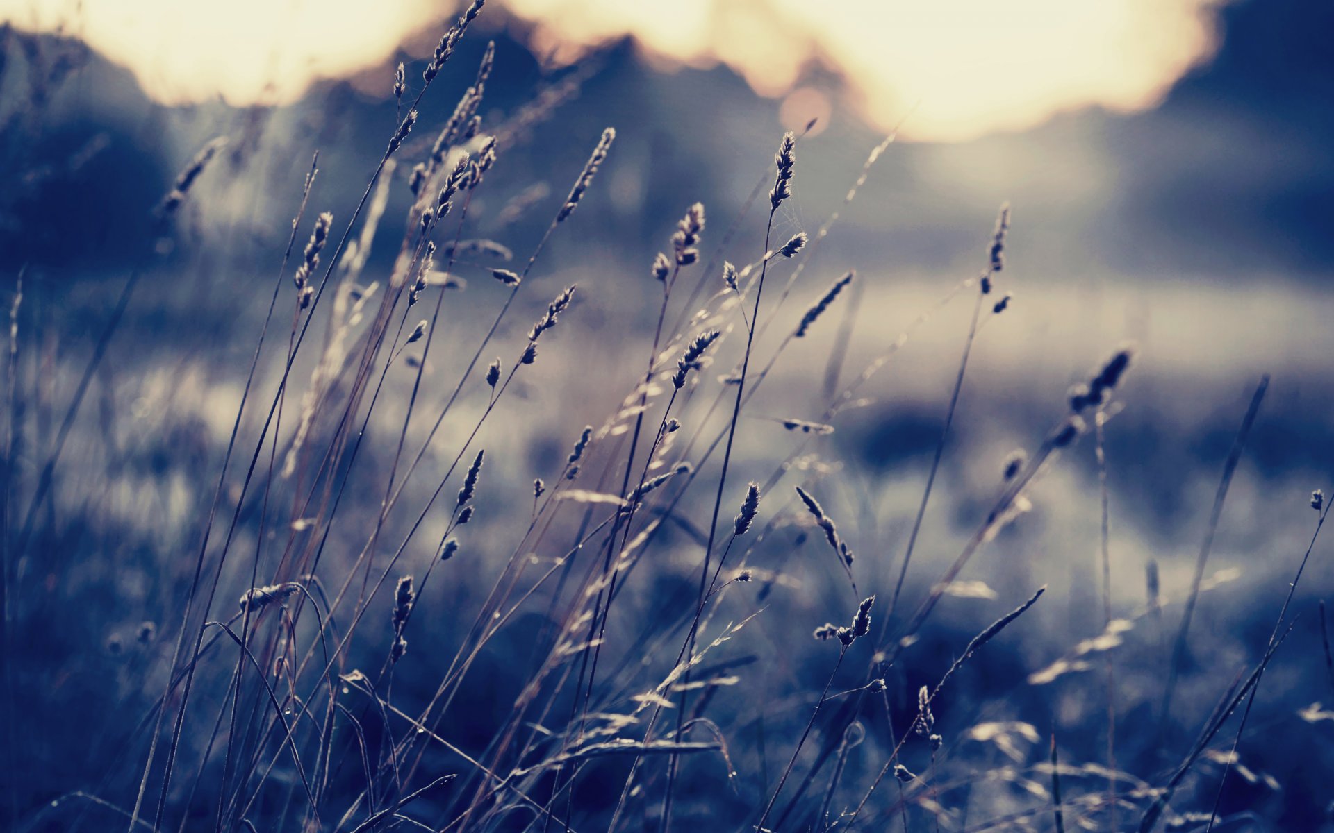 Landschaft von nackten Bäumen im Winter bei Sonnenuntergang