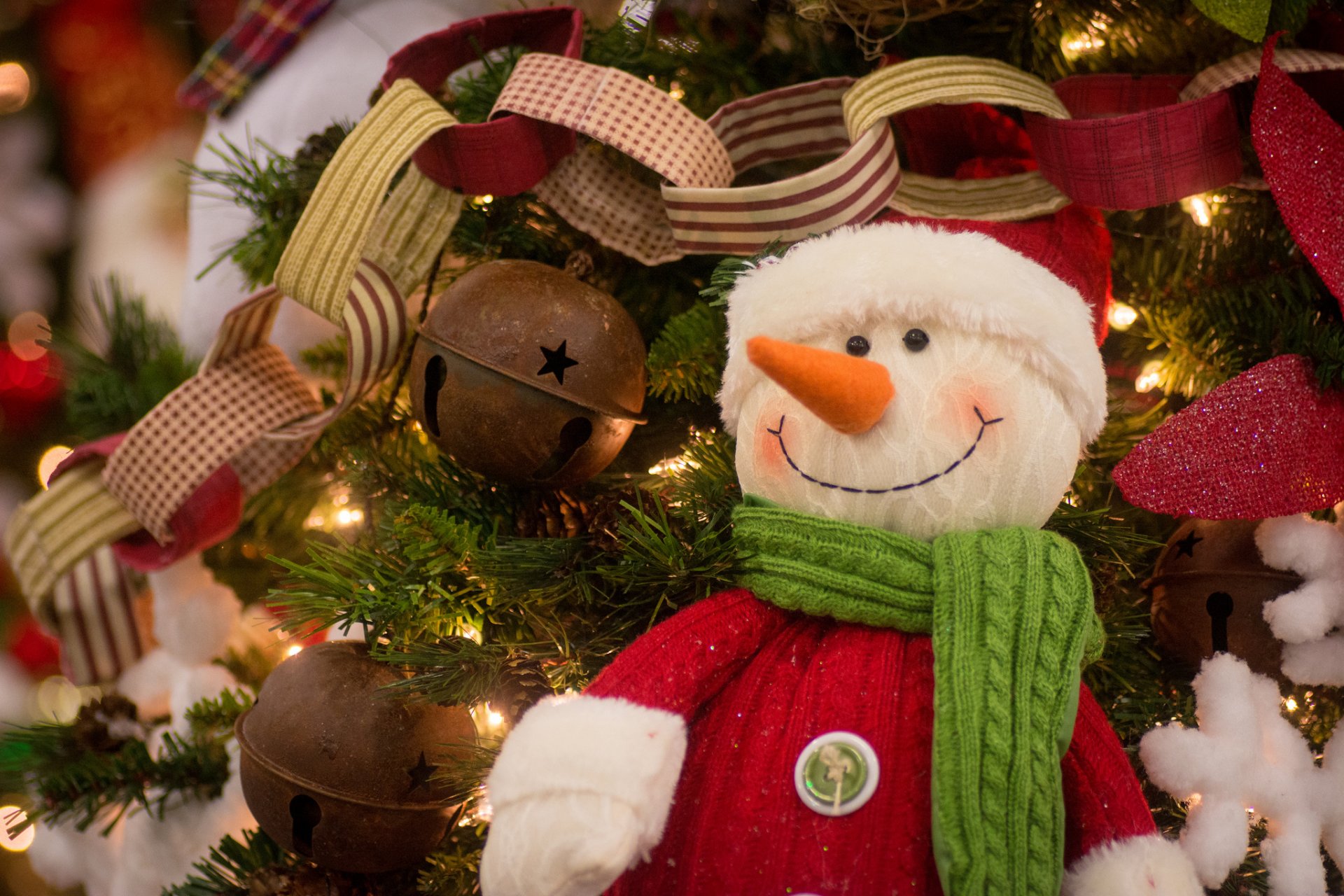 Schneemann am weihnachtsbaum zusammen mit anderen dekorationenSchneemann am Weihnachtsbaum zusammen mit anderen Dekorationen