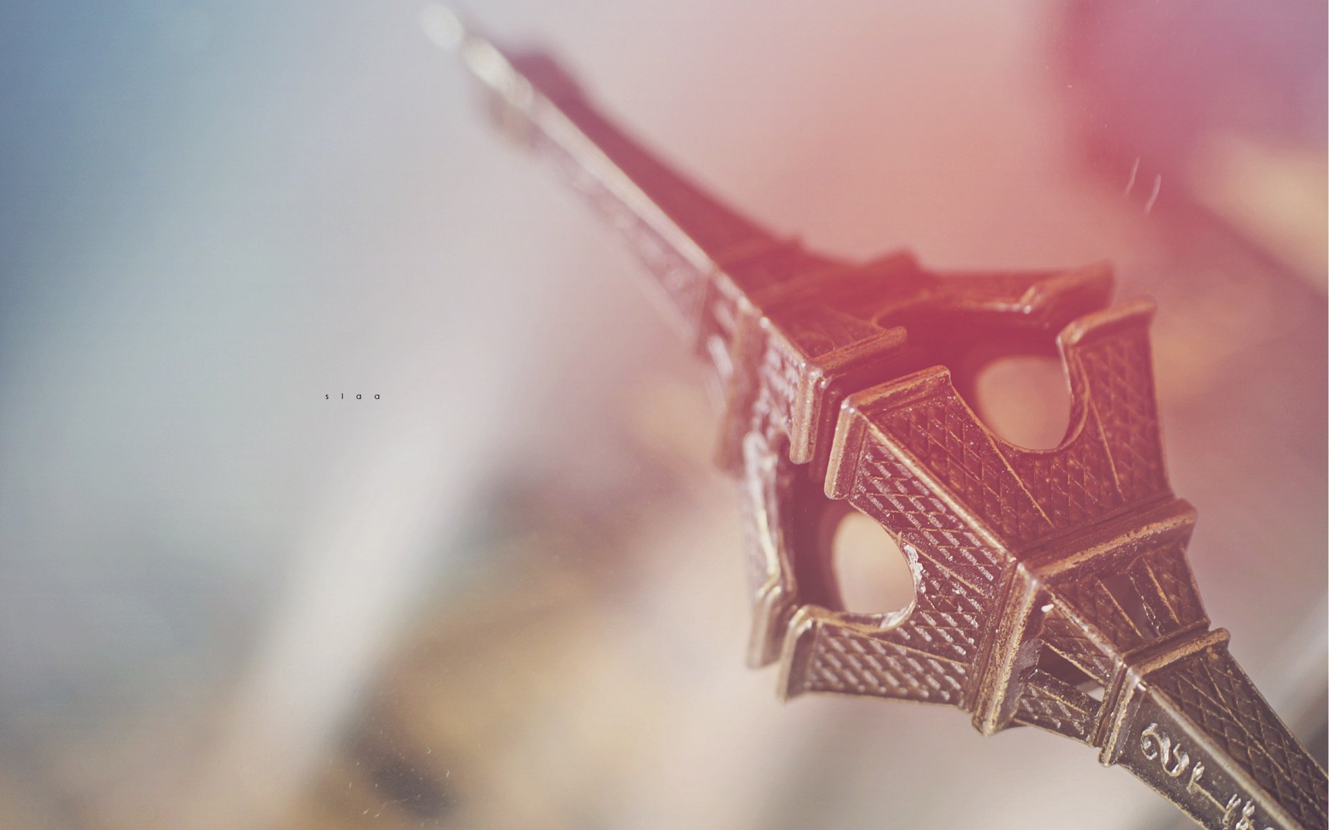 Die Statue des Eifelturms wird auf dem Tisch reflektiert
