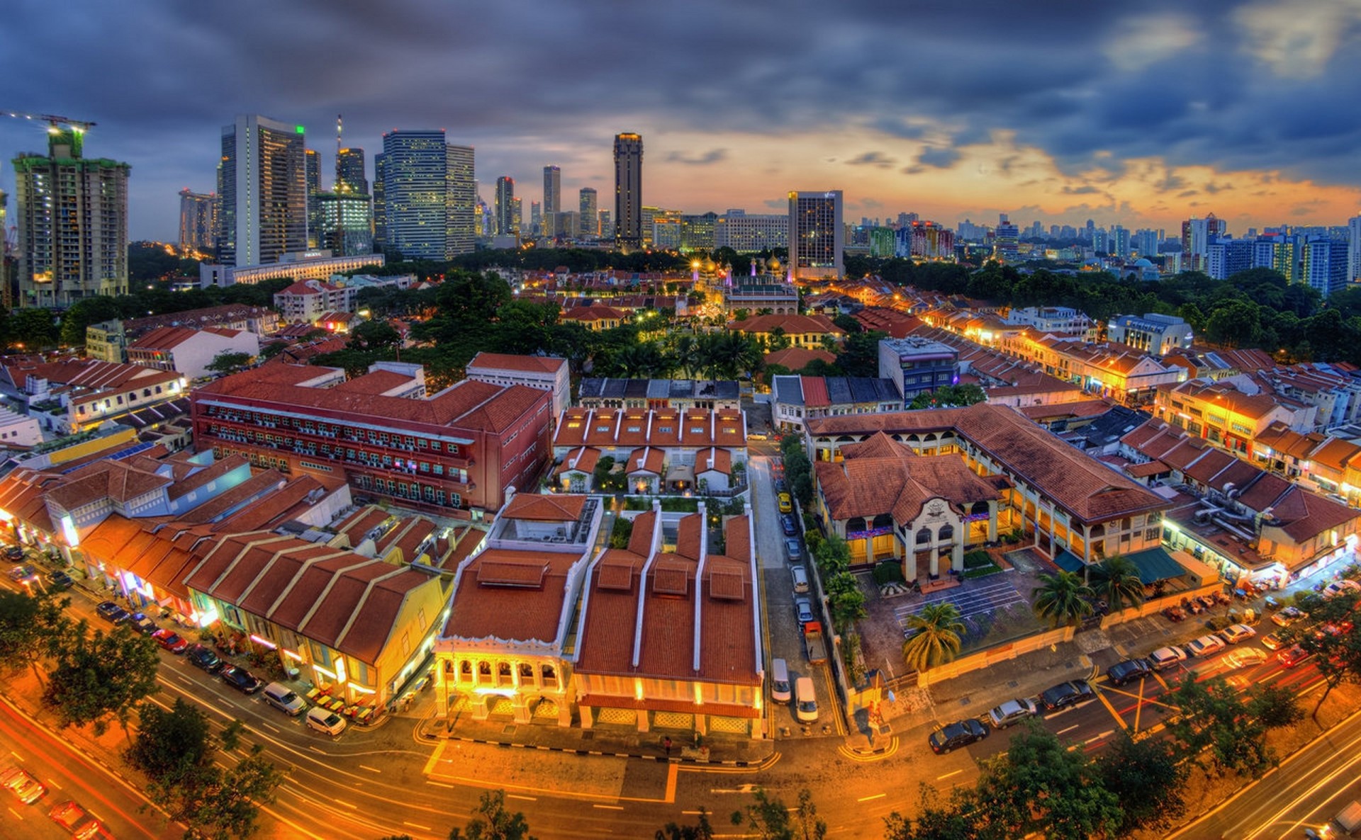 Die stadt mit einer vogelperspektive im morgengrauenDie Stadt mit einer Vogelperspektive im Morgengrauen