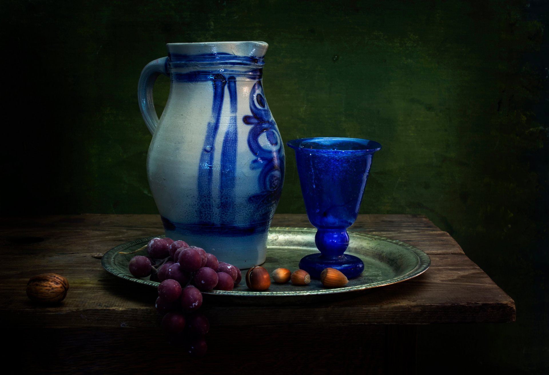 Eine komposition für ein stillleben. trauben, nüsse und ein glasEine Komposition für ein Stillleben. Trauben, Nüsse und ein Glas