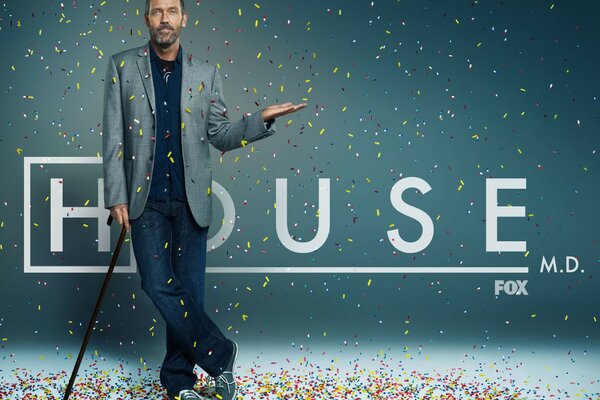 Porträt des schauspielers dr. house mit einer pille auf der zungePorträt des Schauspielers Dr. House mit einer Pille auf der Zunge