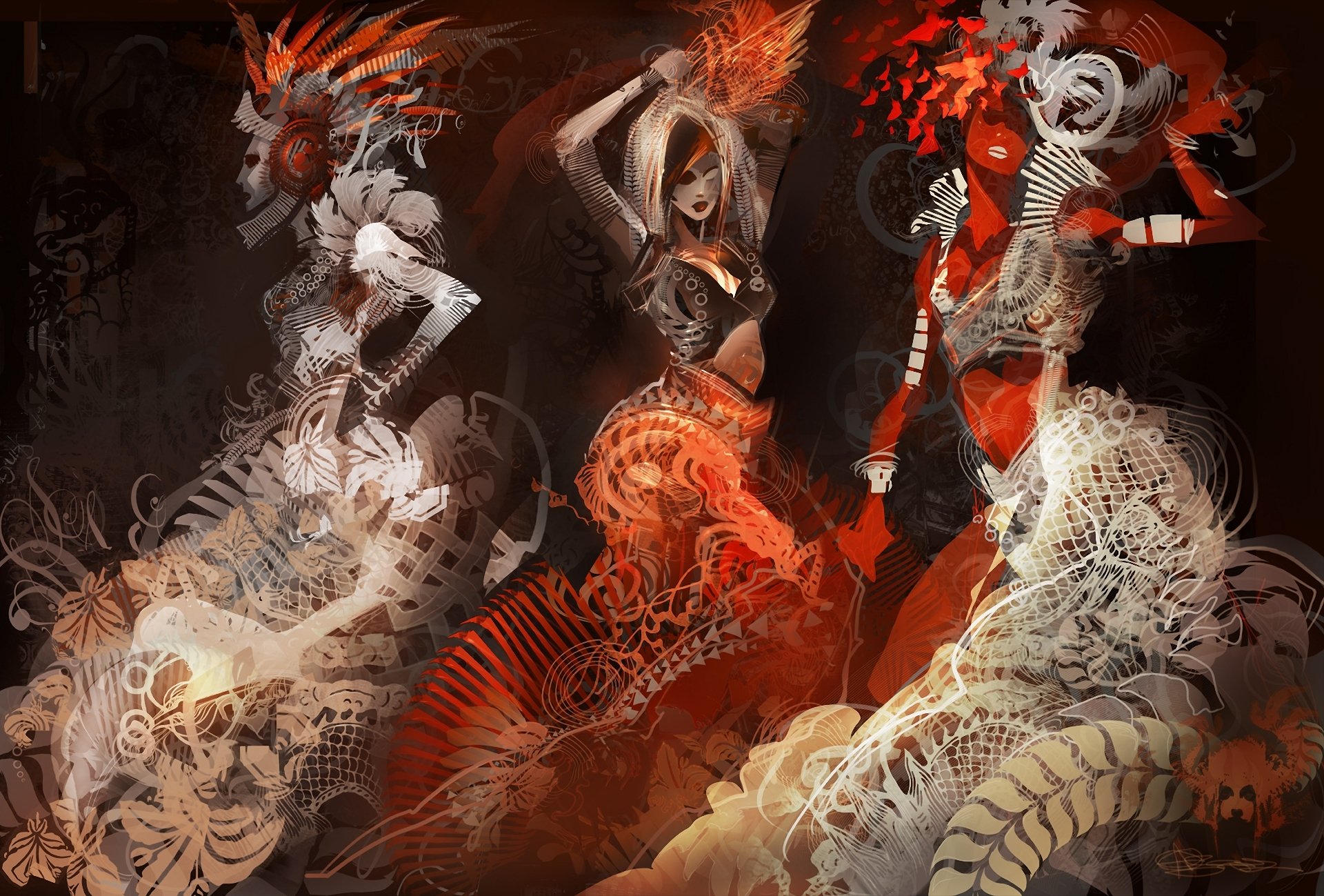 Zeichnung von drei personen auf farbigem hintergrundZeichnung von drei Personen auf farbigem Hintergrund
