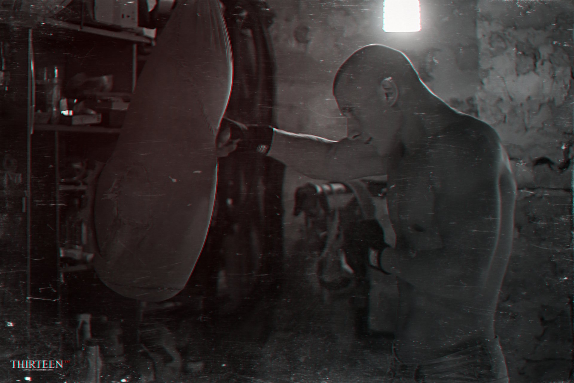 Weißer mercedes an der hinteren wand eines großen, halbdunkelten hangars