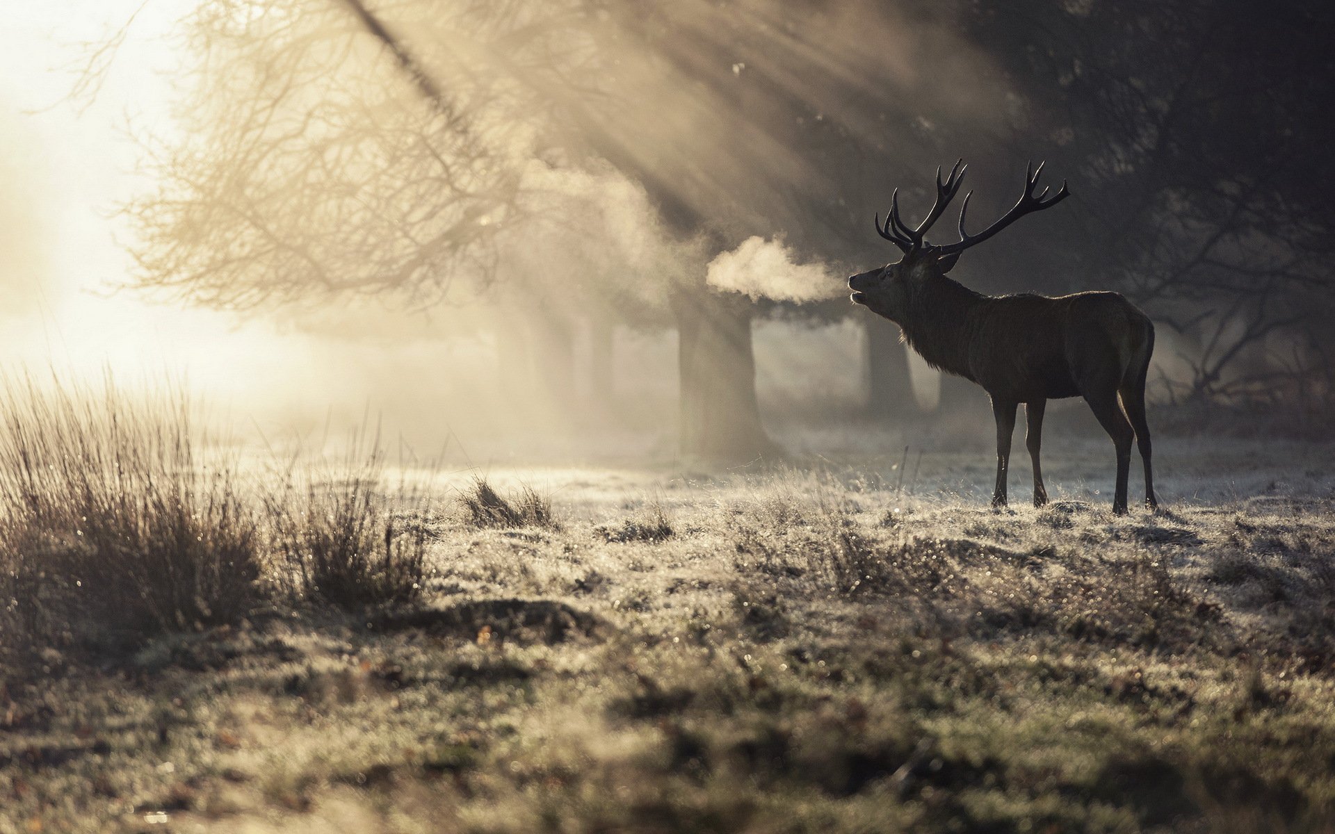 Das weinen eines wilden hirsches vor dem hintergrund einer brennenden savanneDas Weinen eines wilden Hirsches vor dem Hintergrund einer brennenden Savanne