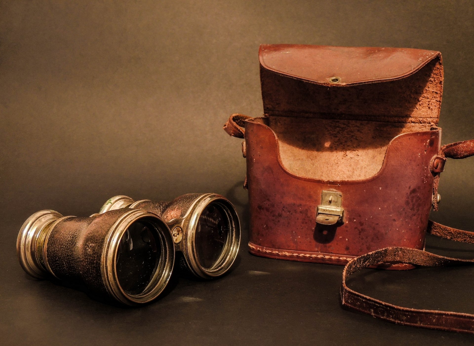 Vintage fernglas und lederetui. ende des neunzehnten jahrhundertsVintage Fernglas und Lederetui. Ende des neunzehnten Jahrhunderts