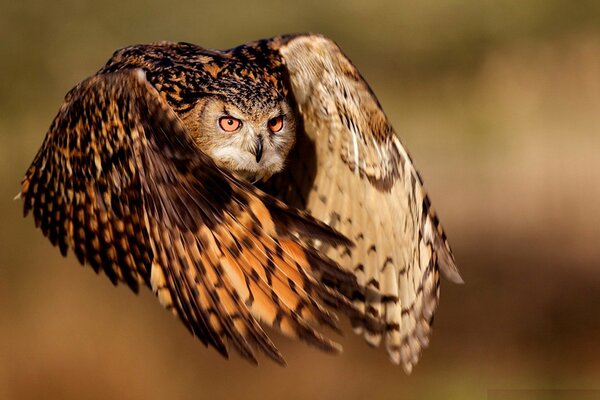 Seltenes Foto einer Eule im Flug