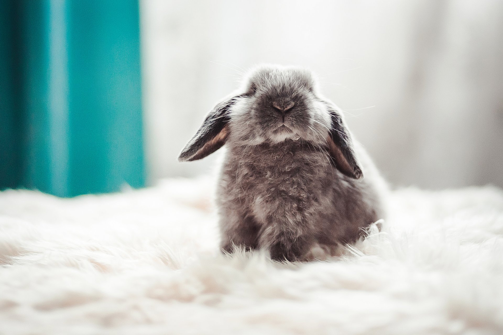 Kleinkind-Kaninchen auf weißem Daunenteppich