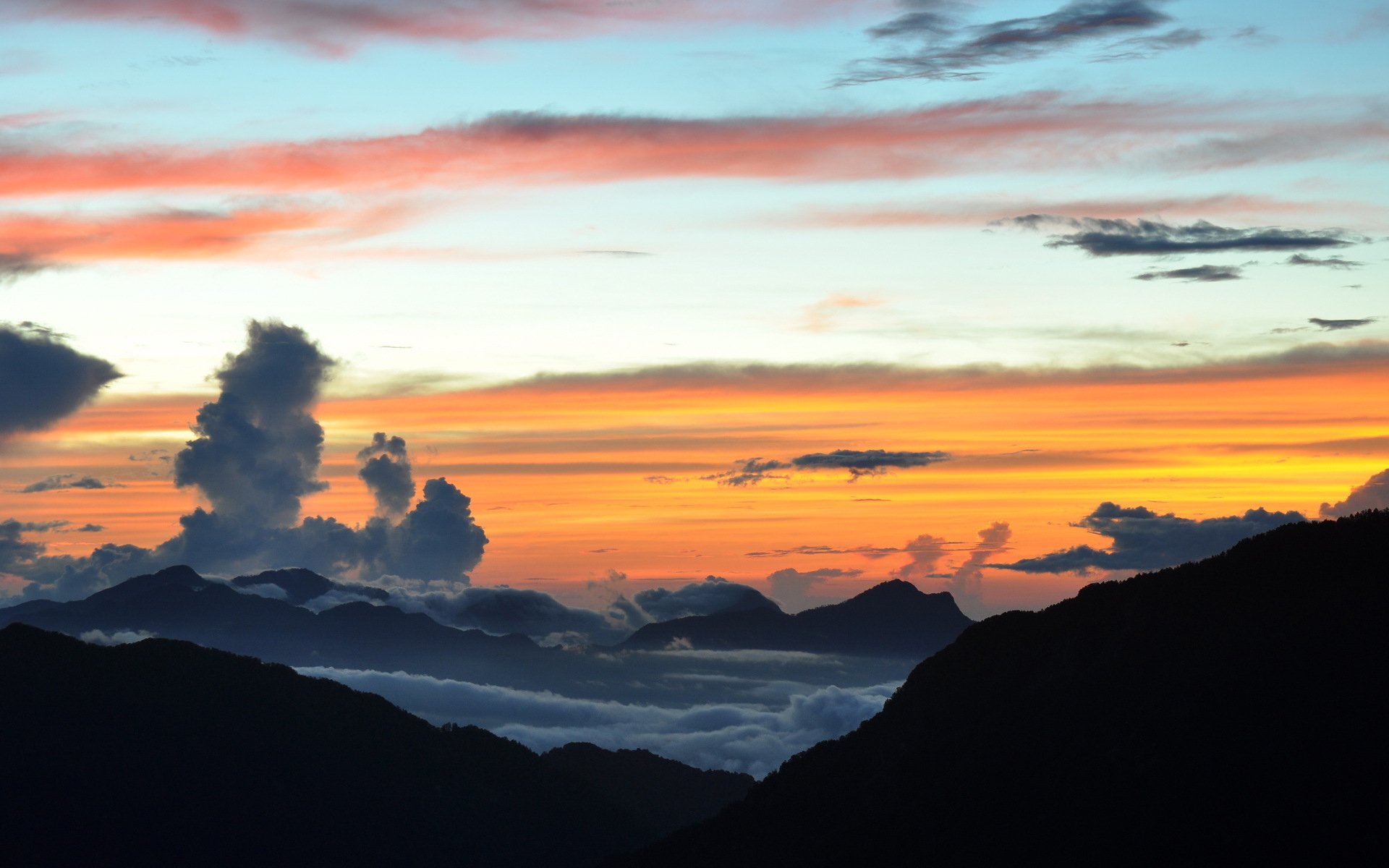 Ein Bergmassiv in Form eines dünnen Mondes im Ozean
