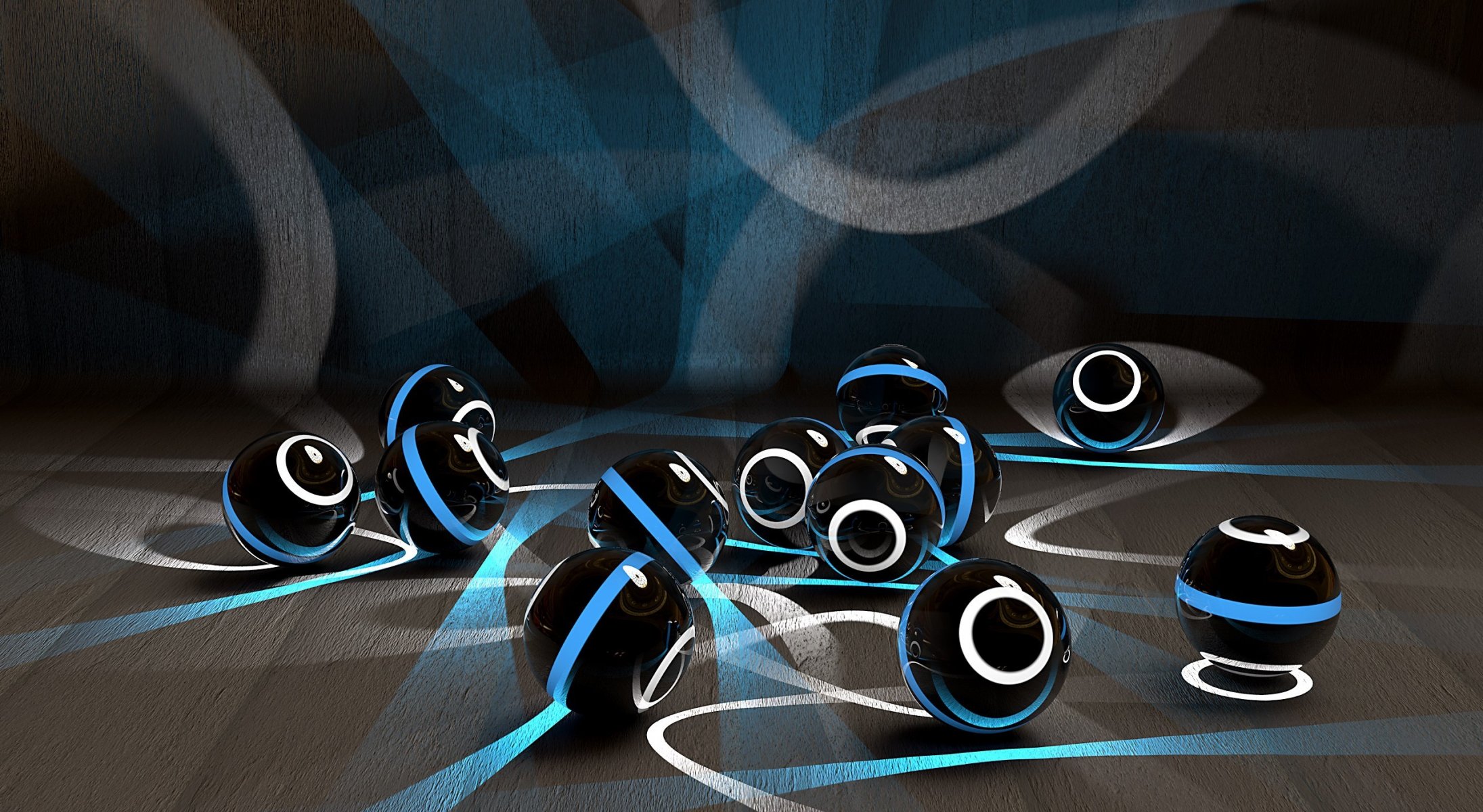 Kugeln mit weißen Ringen hinterlassen Lichtstrahlen