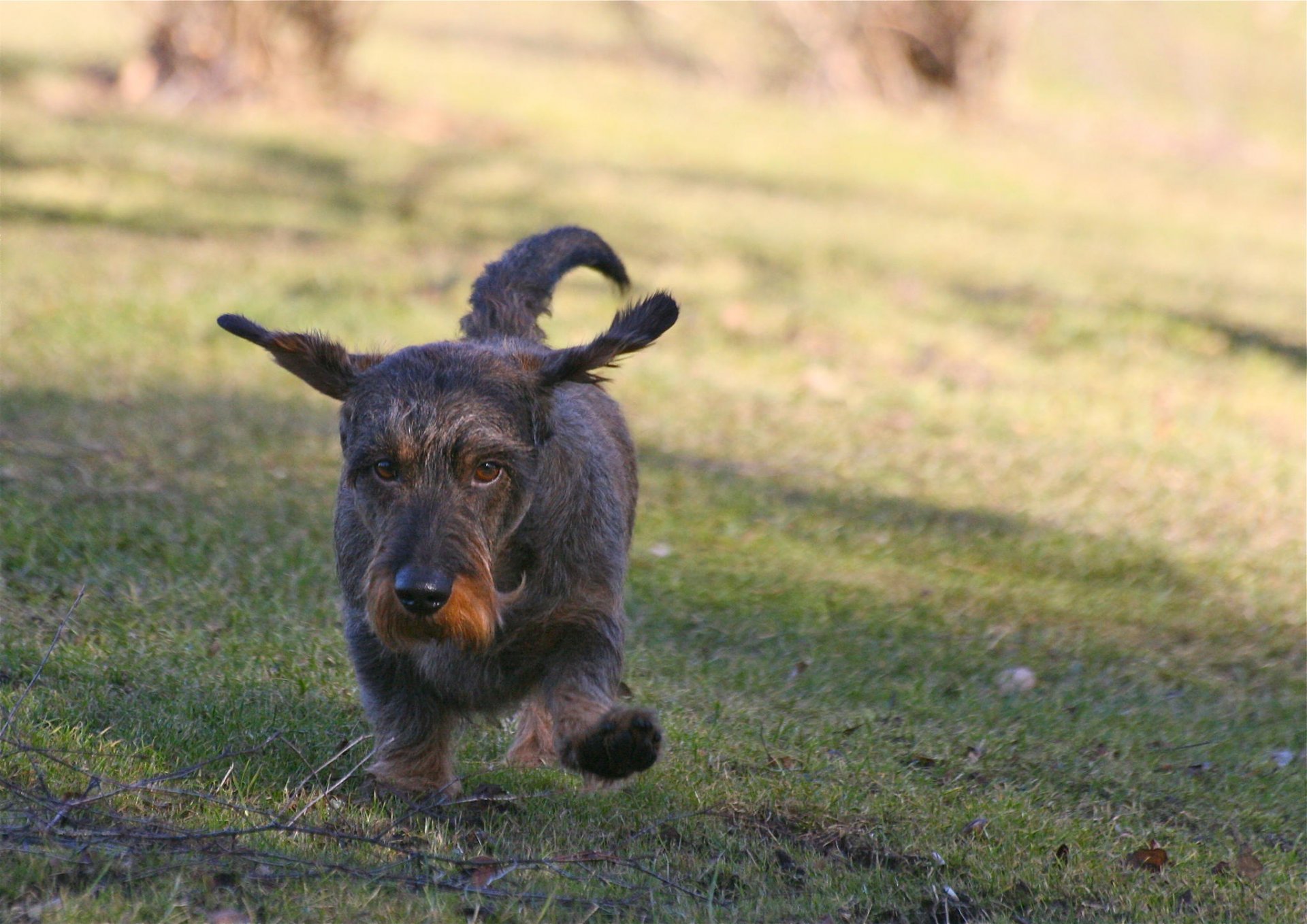Süßes Foto von einem Dackel auf dem grünen Gras