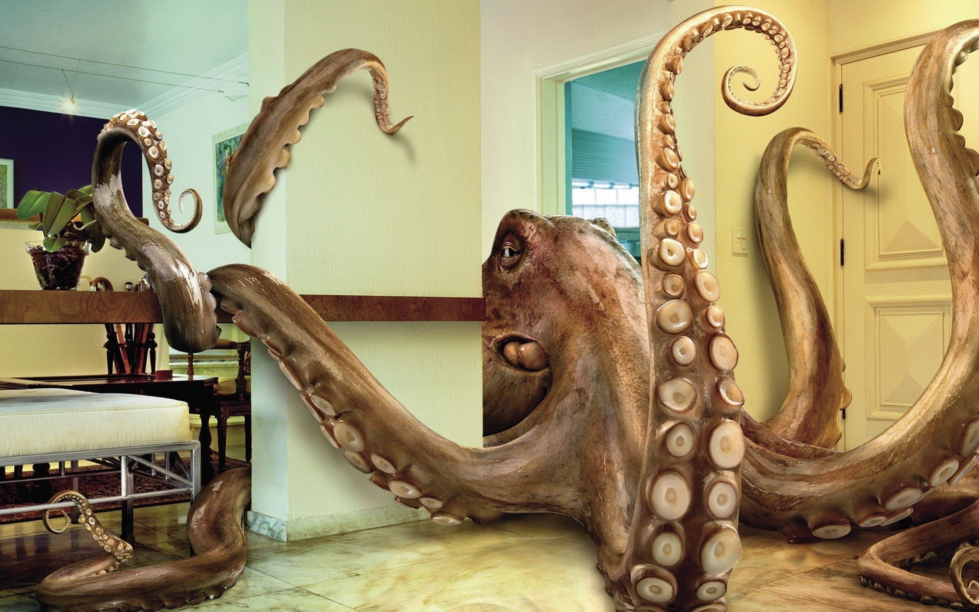 Riesiger Oktopus auf Fliesen in der Wohnung