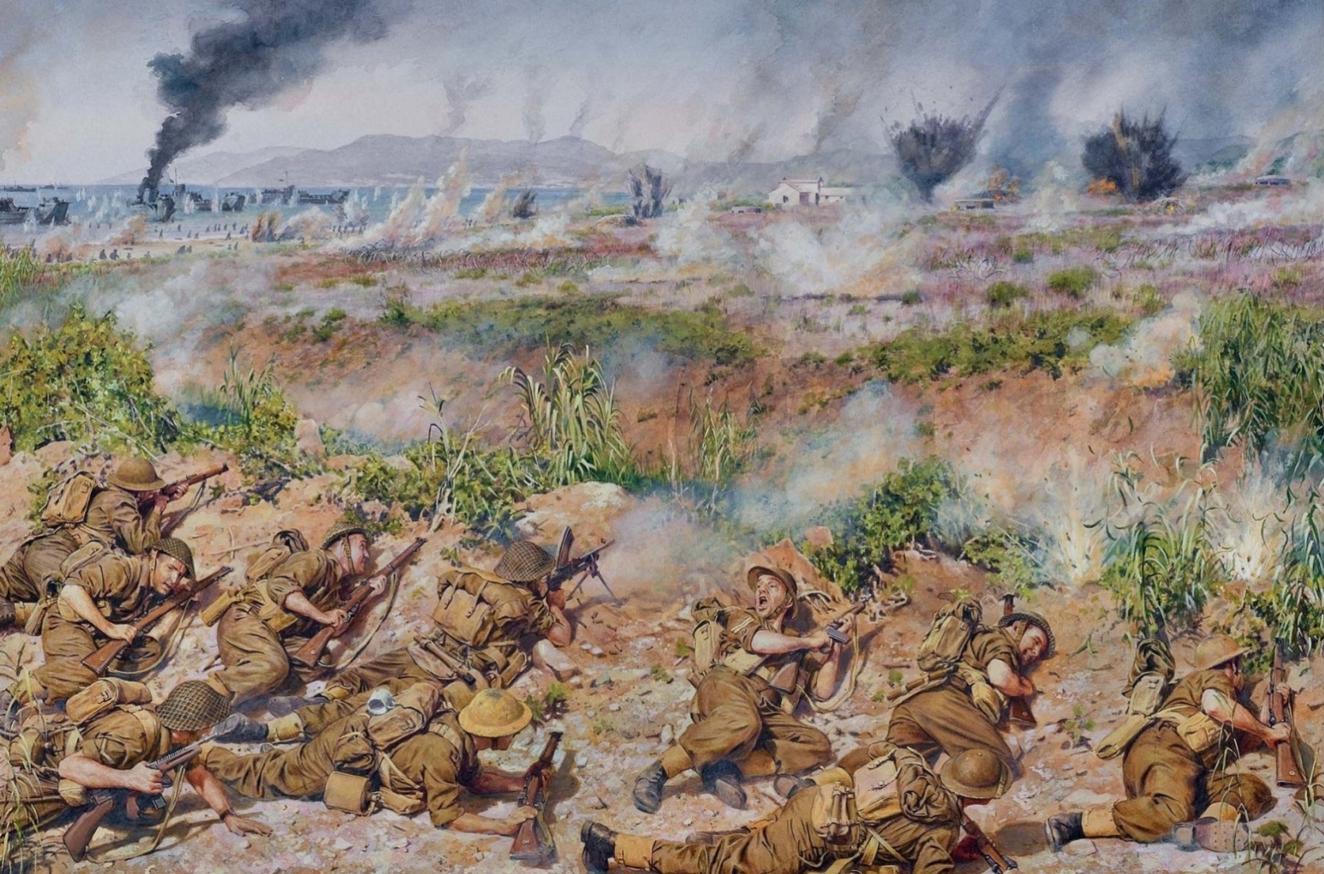 Feld der Feindseligkeiten mit Soldaten in den Schützengräben