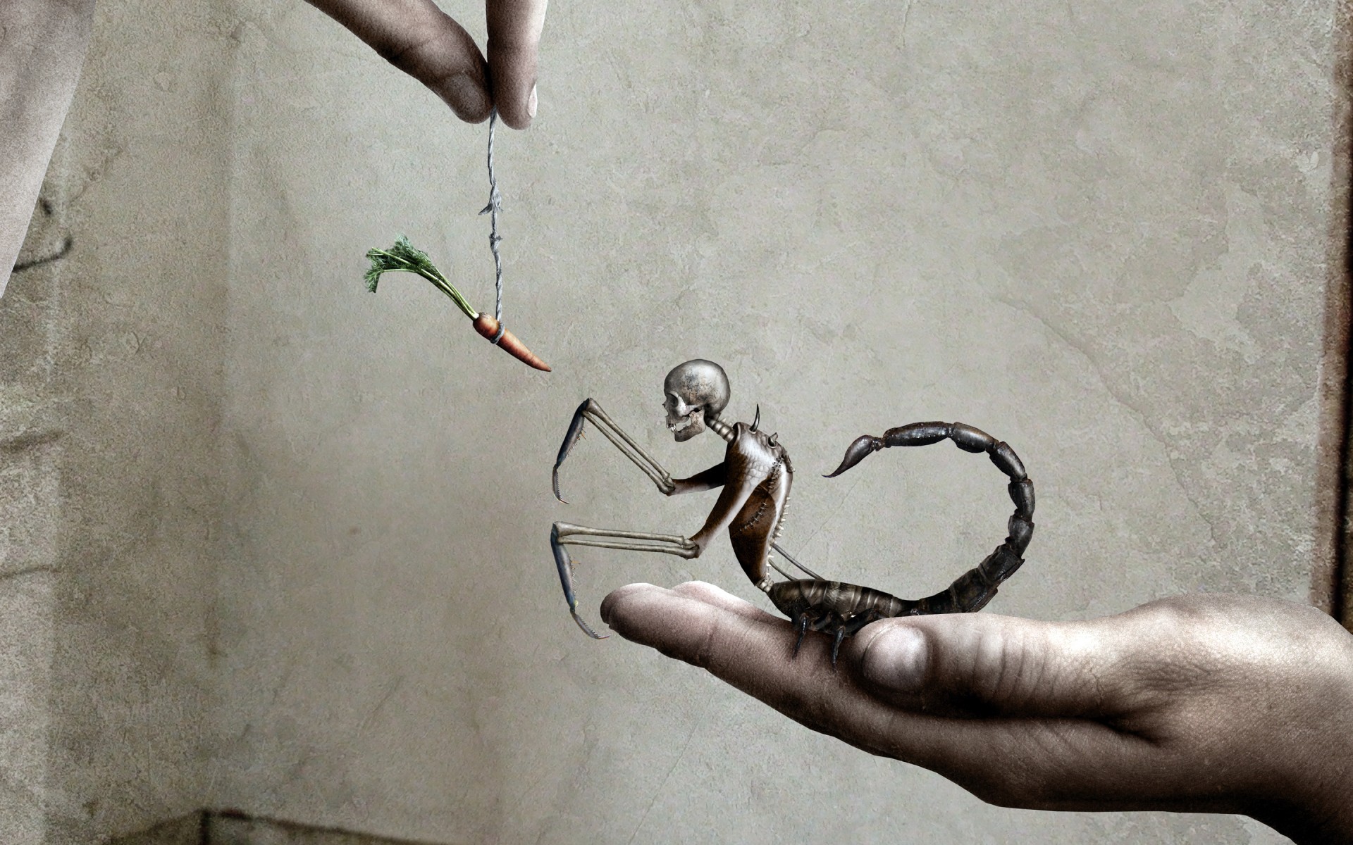 Hände skilet menschlichen skorpion karotte auf köderHände Skilet menschlichen Skorpion Karotte auf Köder