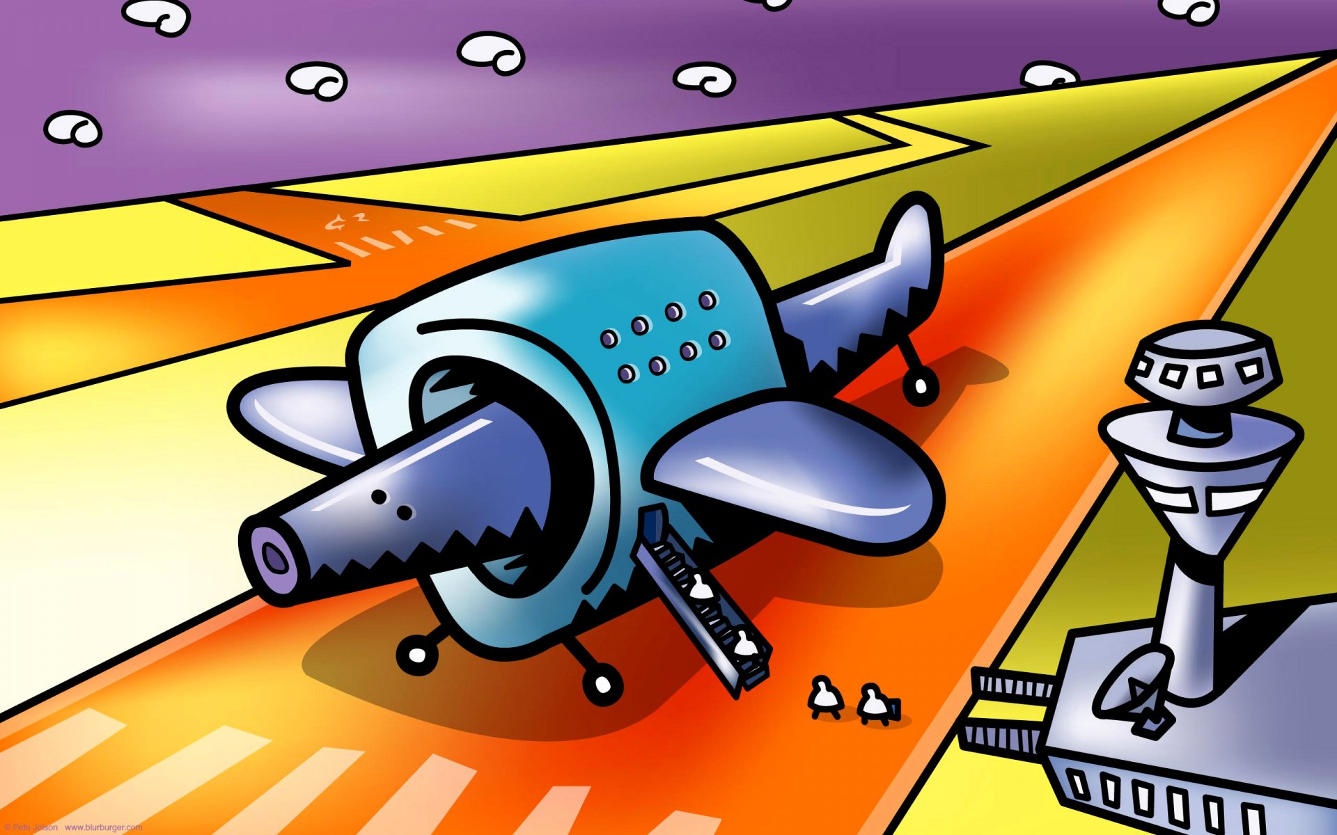 Passagierflugzeug am Flughafen vor dem Hintergrund eines Gewitterhimmels