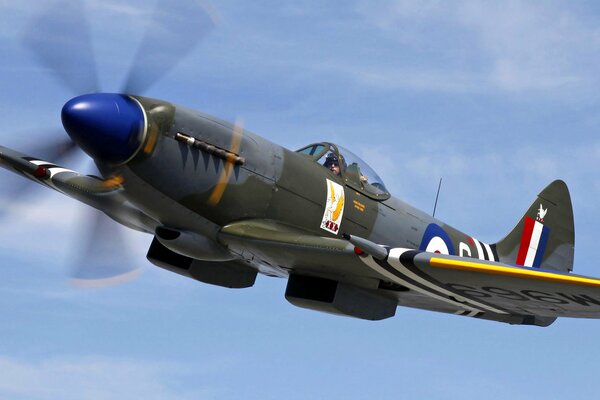 Ein kampfpilot im flugzeug fliegt durch den himmelEin Kampfpilot im Flugzeug fliegt durch den Himmel