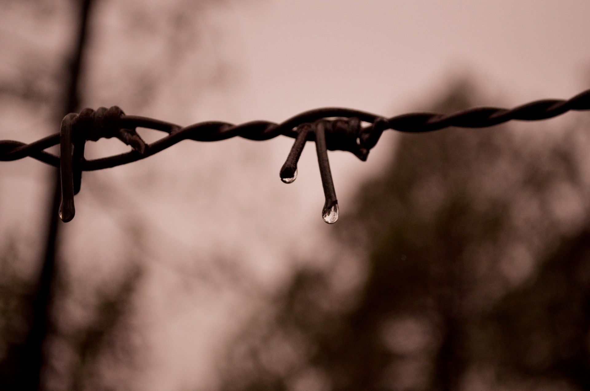 Auf dem Rasen ein Teller mit Erdbeeren im Regen