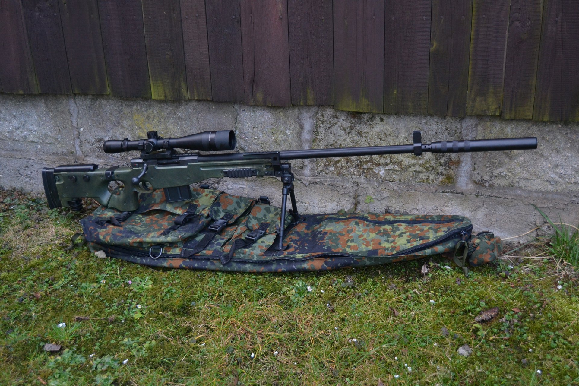 Scharfschützengewehr in einer tragetasche auf dem rasen