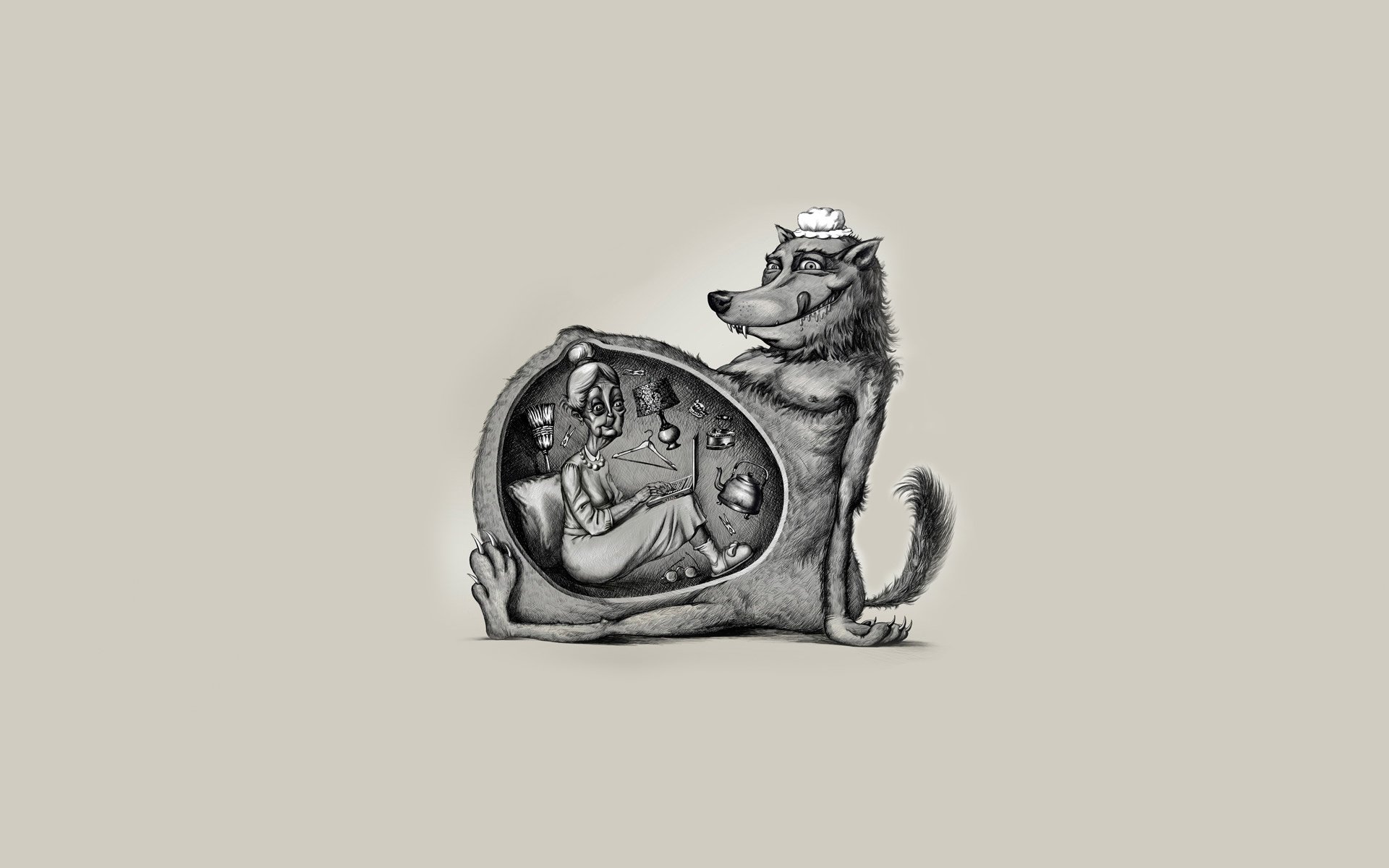 Abbildung eines grauen Wolfes von Rotkäppchen