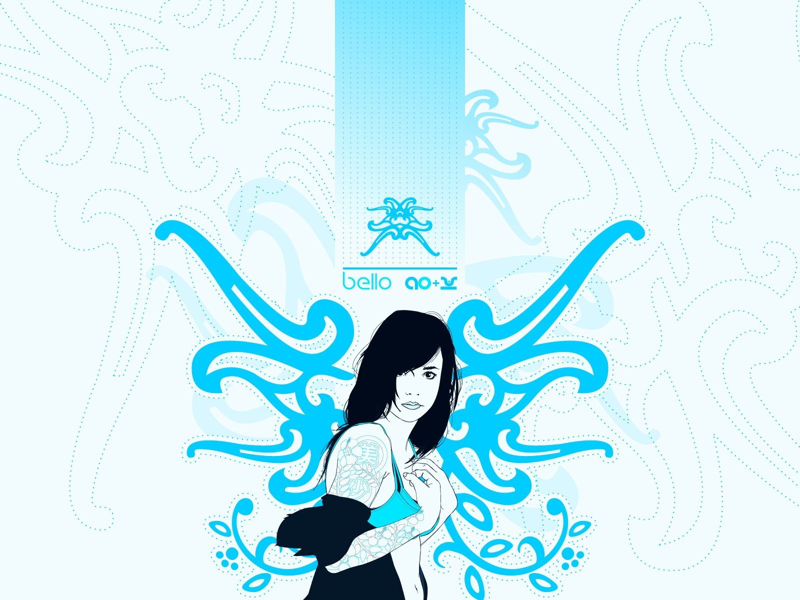 Mädchen mit tattoos auf dem arm auf dem hintergrund der blauen musterMädchen mit Tattoos auf dem Arm auf dem Hintergrund der blauen Muster