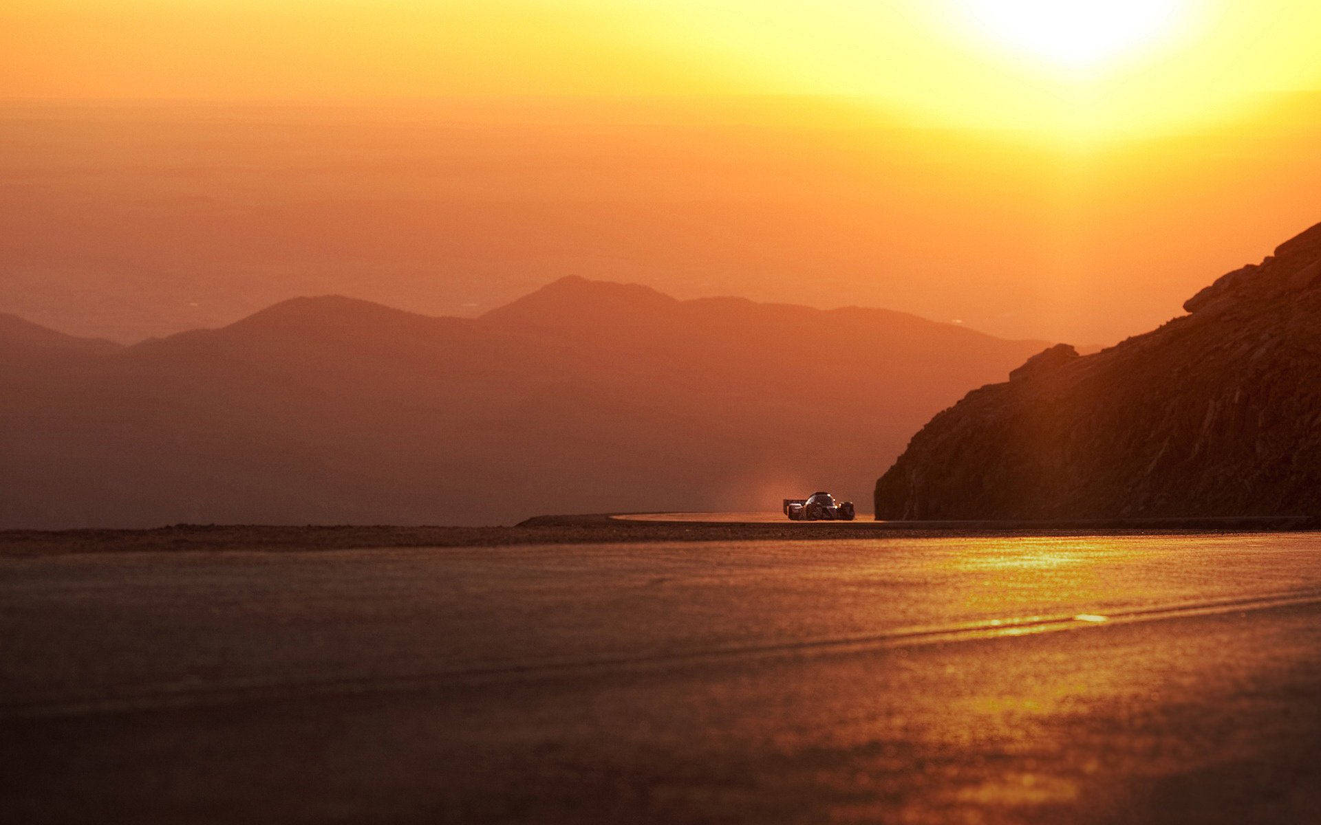 Ferrari kommt in die Kurve.. Irgendwo in den Bergen auf dem höchsten Gang